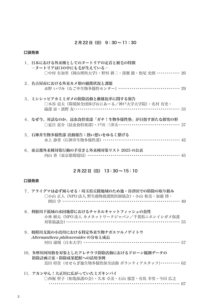 2026年2月21,22日に麻布大学(神奈川県相模原市)で開催された「第1回 水辺の外来種研究集会 & 第12回 淡水ガメ情報交換会」の講演要旨集です。